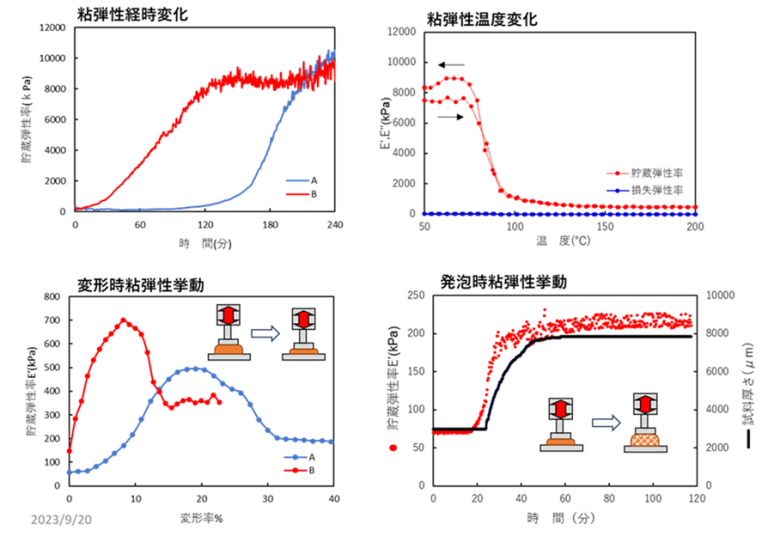 形状変化(硬化、軟化、溶融、発泡、収縮)