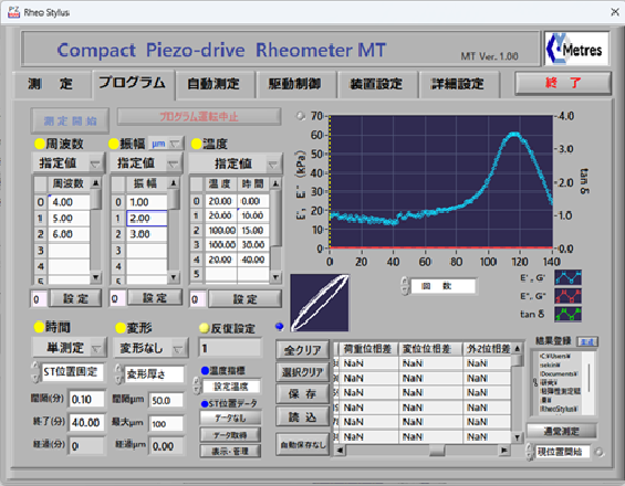 温度・時間プログラムの設定、振動条件の組み合わせプログラム、連続的変形時の粘弾性測定、