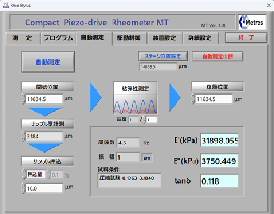 ・ピエゾ駆動による微小直線振動を設定が可能な動的粘弾性測定